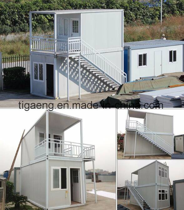 La casa prefabricada se puede utilizar como vivienda temporal en el emplazamiento de la obra o cualquier lugar, tal como oficina, sala de reunión, dormitorio, el centro de exposición, hacer compras y así sucesivamente, que tiene diseño científico y humanizado, aspecto atractivo, durabilidad favorable al medio ambiente, alta y super-weatherability.