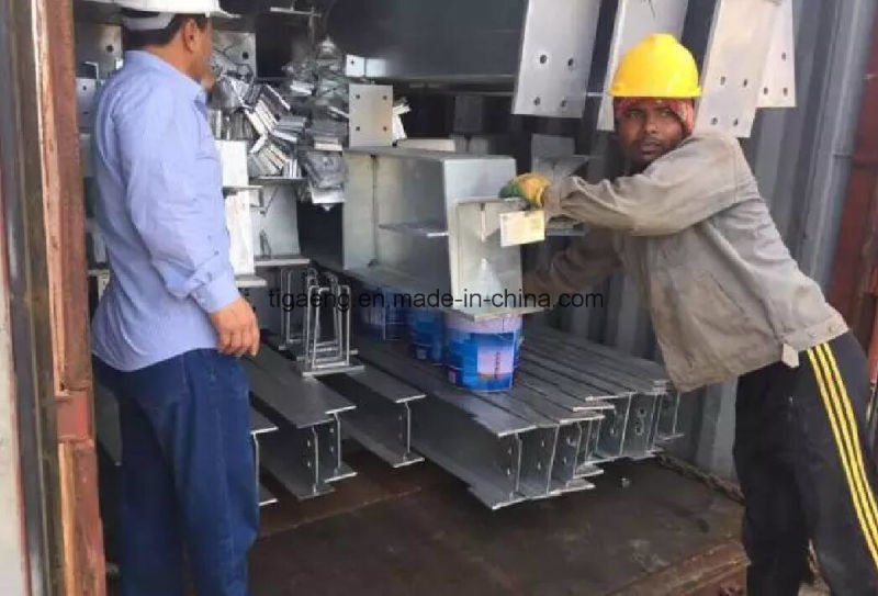 La estructura de acero es ampliamente utilizada adentro fábricas, almacenes, oficinas, alamedas de compras, escuelas, hospitales, edificios de comunidad, estadio, campo de fútbol, etc. La materia prima de la estructura de acero es acero de la buena calidad Q235/Q345. Las condiciones del terremoto son condiciones del terremoto de 8 grados, condiciones de clima -20°C-45°C, ⊃2; de la nieve load100 Kg/m, kilómetro por hora del viento speed150
