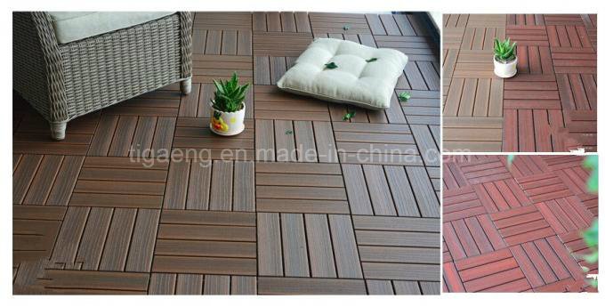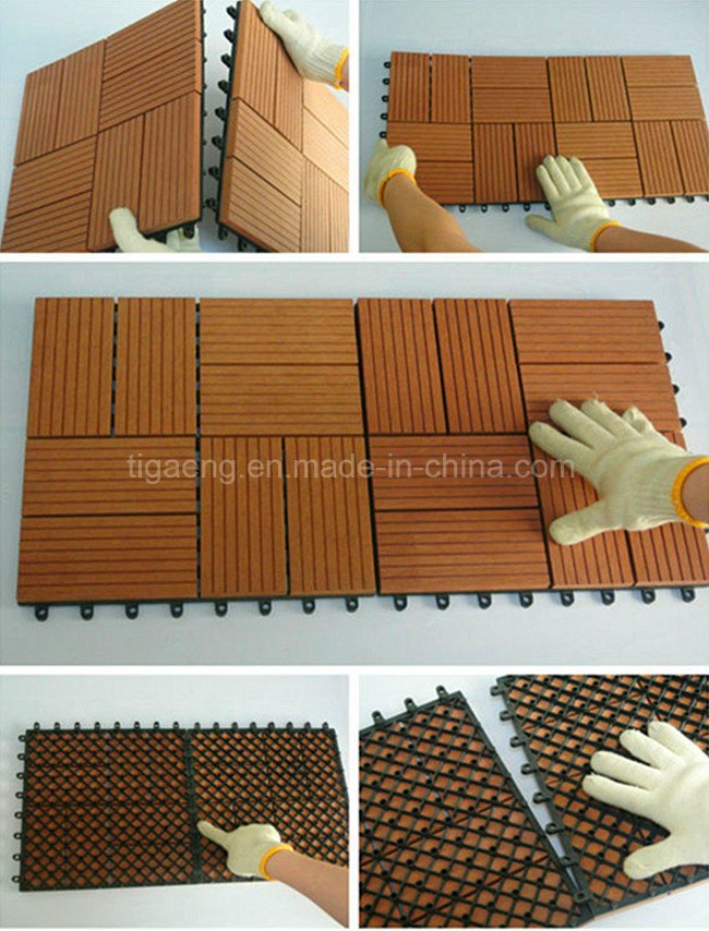 Suelo de WPC DIY: el suelo cuadrado de 310*310*22m m, proporciona a la talla ideal para la instalación fácil, puede ser diseñado aleatoriamente según longitudinal o transversal, él incluso proporciona a una gran variedad de color y de golpeteo.