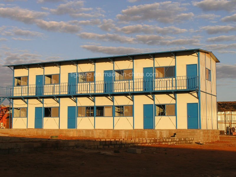 La casa prefabricada se puede utilizar como vivienda temporal en el emplazamiento de la obra o cualquier lugar, tal como oficina, sala de reunión, dormitorio, el centro de exposición, hacer compras y así sucesivamente, que tiene diseño científico y humanizado, aspecto atractivo, durabilidad favorable al medio ambiente, alta y super-weatherability.